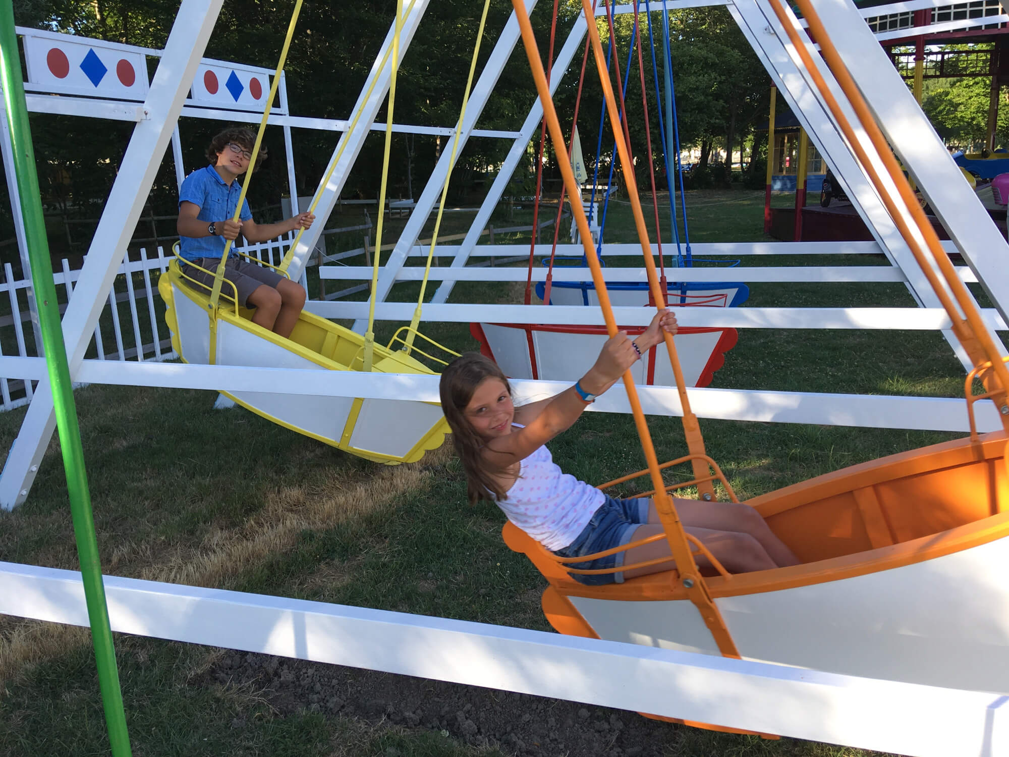 A côté sont installées des balançoires d’époque 1920, attraction folle des fêtes foraines d’entre deux guerres.